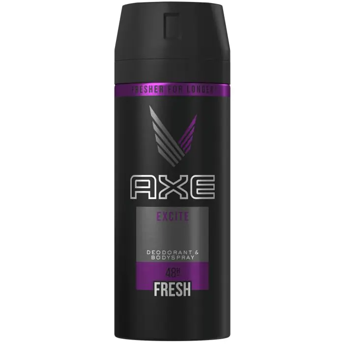 Déodorant Excite de Axe est un déodorant sous forme aérolysante qui évite les odeurs désagréables de vos aisselles avec un parfum agréable et frais. Il est antitranspirant et spécialement créé pour les hommes, avec un arôme de notes caramel qui émoustillera tout le monde et le doux colorant noisettes et coco qui vous rendra un véritable objet de spiritueux et de séduction.